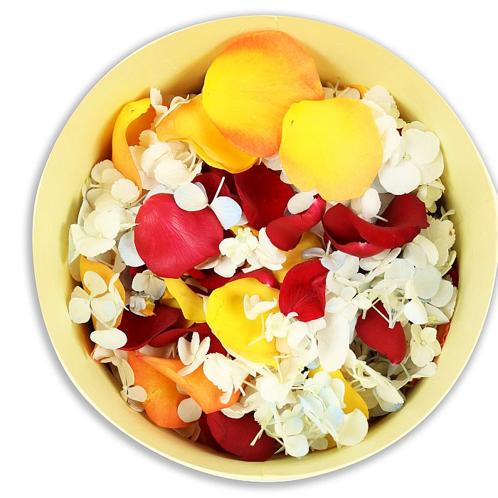 Our luxurious flower arrangement is a stunning blend of hand-picked seasonal blooms that captures the heart and brightens any occasion. Revel in the dramatic interplay of colors with the soft, lush Hydrangea petals, the timeless beauty of Rose petals, and the distinctive charm of Chrysanthemum petals. Every element is carefully selected to ensure an arrangement that radiates elegance.